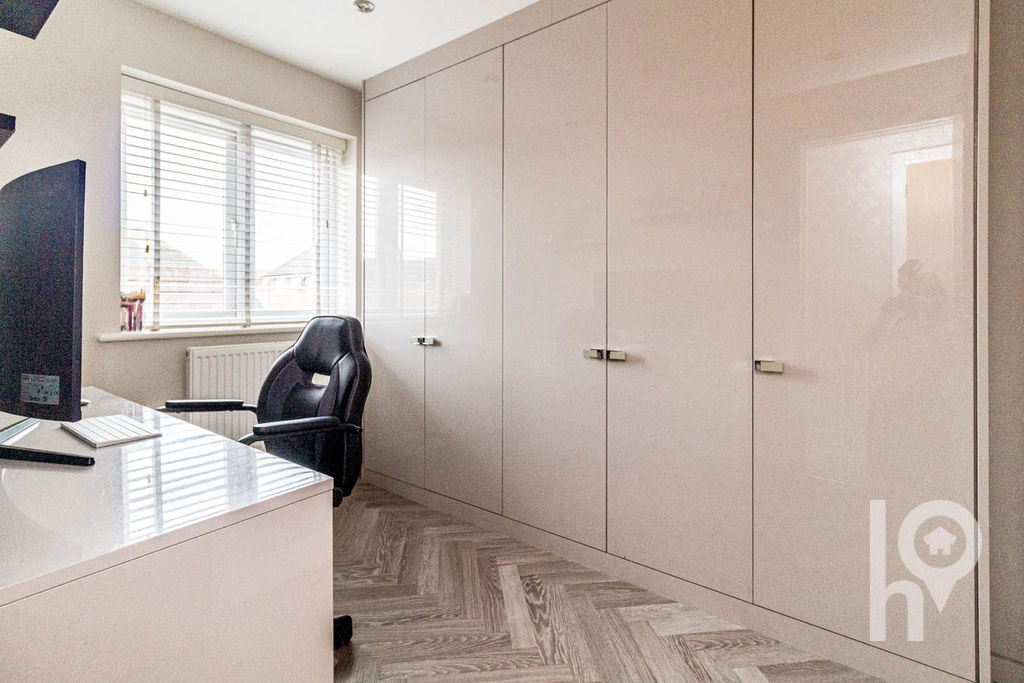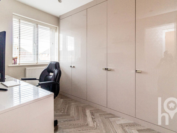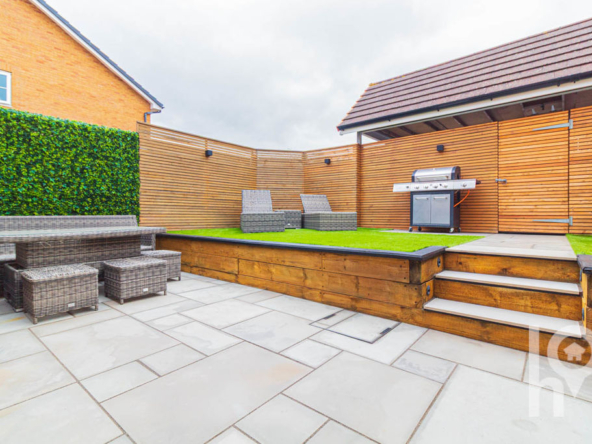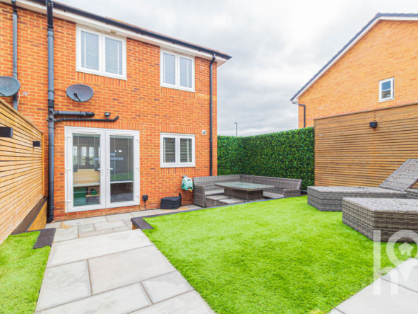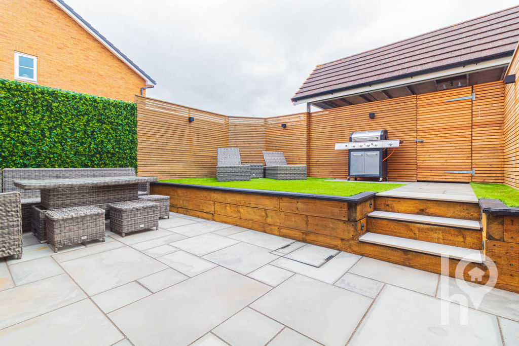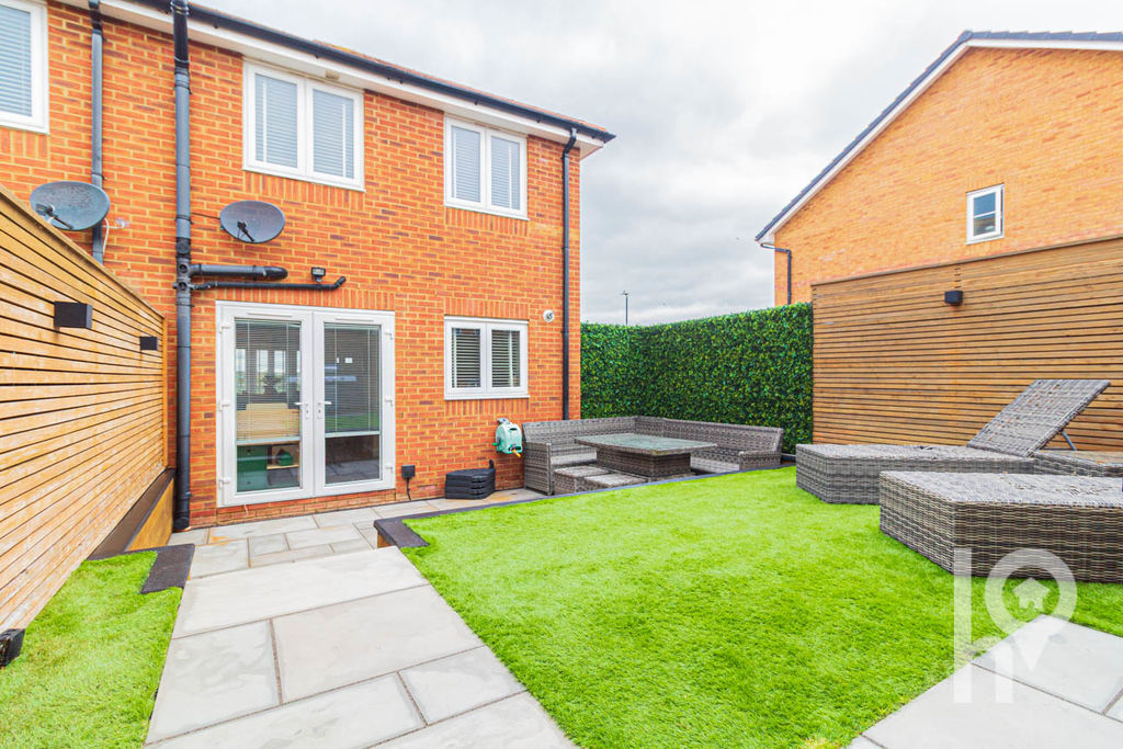 Externally, the rear garden has been thoughtfully designed to provide an ideal space for entertaining, with a stylish patio area and an artificial lawn for year-round ease. The garden also benefits from access to off-road parking.