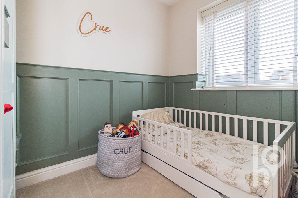 Upstairs, the property continues to impress with a stunning principal bedroom, styled to a high standard with a luxurious, hotel-like feel. The second bedroom is currently utilised as a dressing room and home office, while the third bedroom serves as a delightful nursery. A contemporary family bathroom completes the first floor, comprising a wash basin, WC, and a bath with shower over.