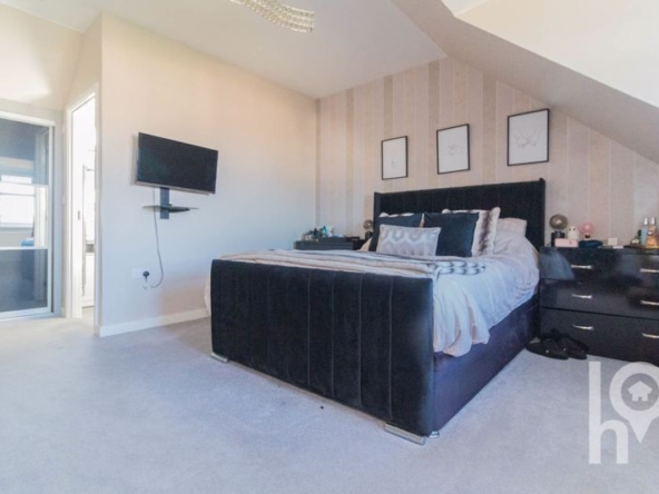 Inside, the home boasts generously sized rooms throughout. The layout includes a welcoming lounge, a modern kitchen/diner ideal for family meals and entertaining, a ground floor cloakroom, three well-proportioned bedrooms, an en-suite shower room to the main bedroom, a stylish family bathroom, and excellent storage options. There are solar panels to assist eco footprint. Outside, a private driveway adds to the property’s practicality with EV car charger.