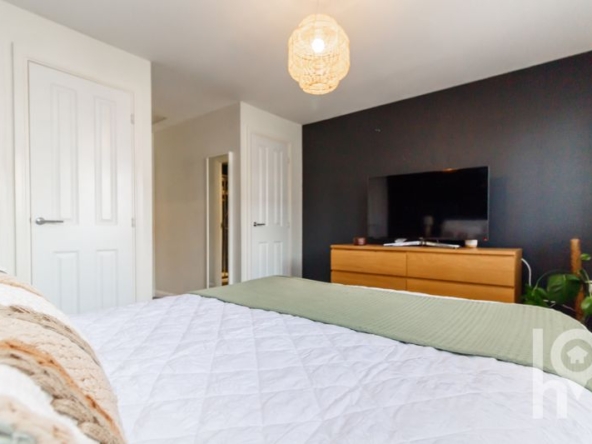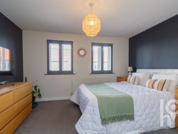 The top floor offers a spacious master bedroom with built-in wardrobes and a private en-suite, along with a second generous double bedroom.