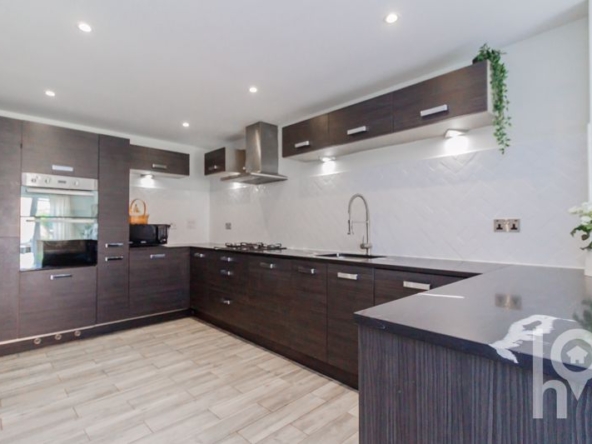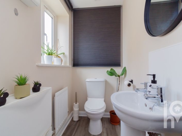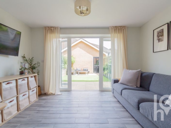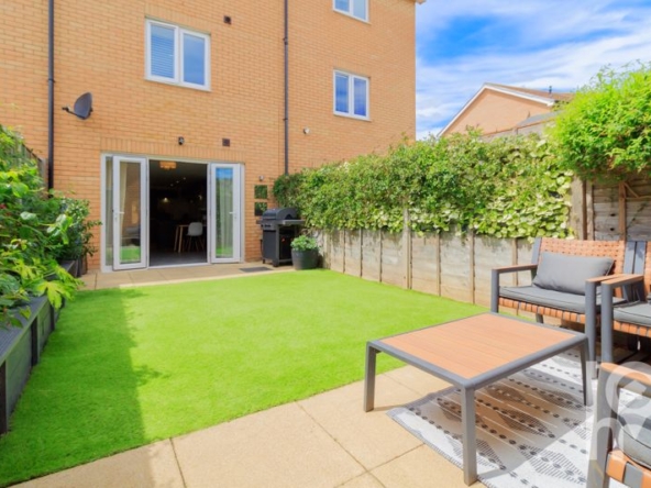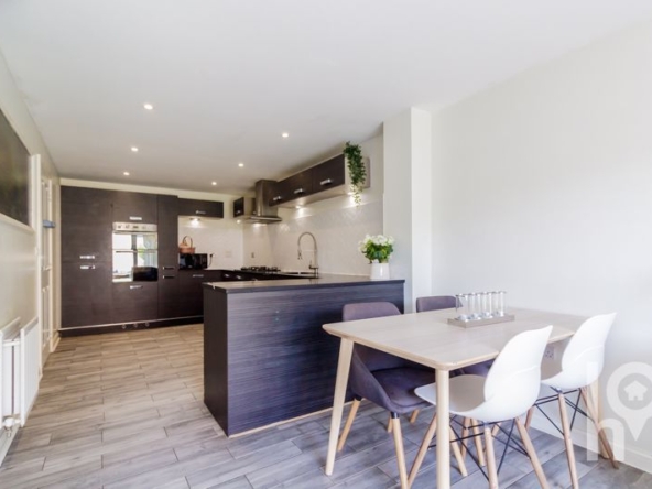 The ground floor features a generous, modern kitchen/family room complete with integrated appliances, ample space for both a dining table and sofa, and a convenient separate WC. Patio doors open onto a low-maintenance rear garden, perfect for relaxing or entertaining.