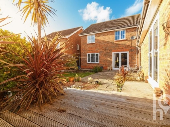 Outside, the landscaped rear garden features a decked entertaining area and is mainly laid to lawn, offering a family friendly space. The garage has been thoughtfully converted to provide an additional versatile room, with useful storage retained to the front, and driveway parking is available in front of the property.