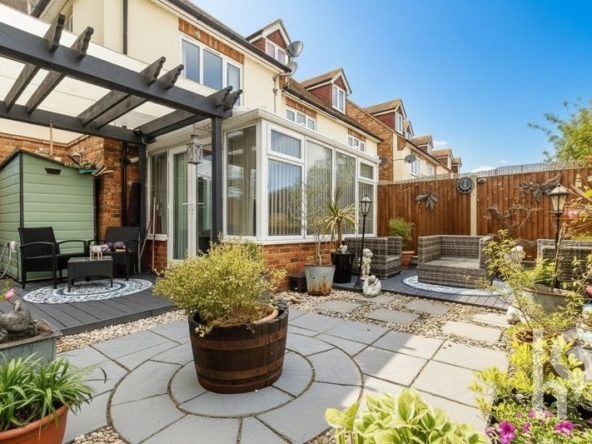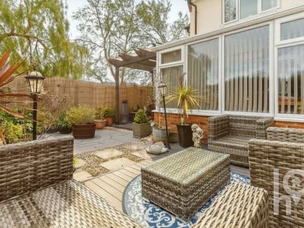 The conservatory opens out onto a low-maintenance, private rear garden—mainly paved with attractive seating areas, perfect for enjoying a morning coffee or hosting summer BBQs with friends and family.