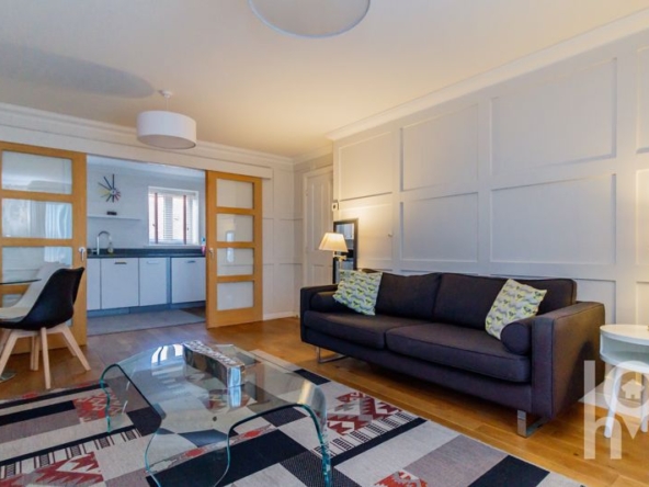 The apartment is beautifully decorated and provides a modern fitted kitchen with appliances, wooden flooring throughout, two bedrooms, one with