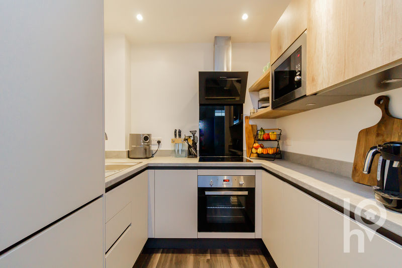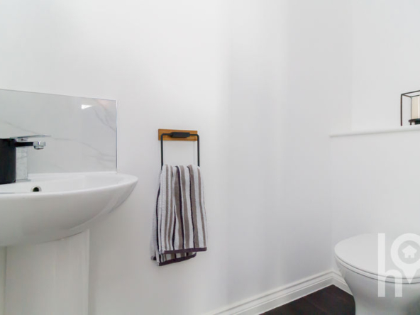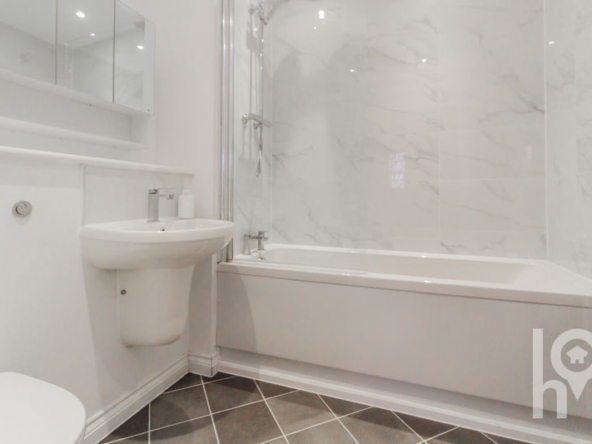 The property boasts a bright open-plan living space, complemented by a modern fitted kitchen equipped with essential appliances, as well as a convenient ground-floor WC. The generously sized bedroom is served by a contemporary bathroom featuring a WC, wash basin, and a bath with overhead shower.