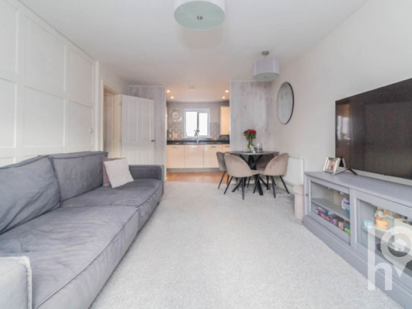 The apartment features a bright open-plan lounge/diner leading to a contemporary fitted kitchen with chrome fittings and integrated oven, hob, washing machine, dishwasher and fridge/freezer. There are two generous double bedrooms, with the master benefiting from a built-in wardrobe and Juliet balcony. A modern family bathroom includes a bath with overhead shower.